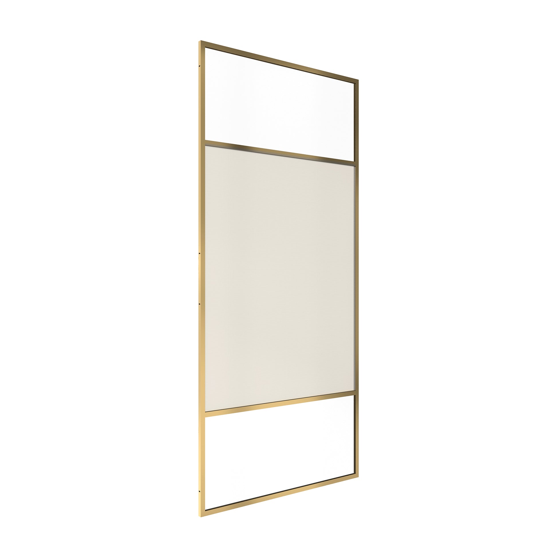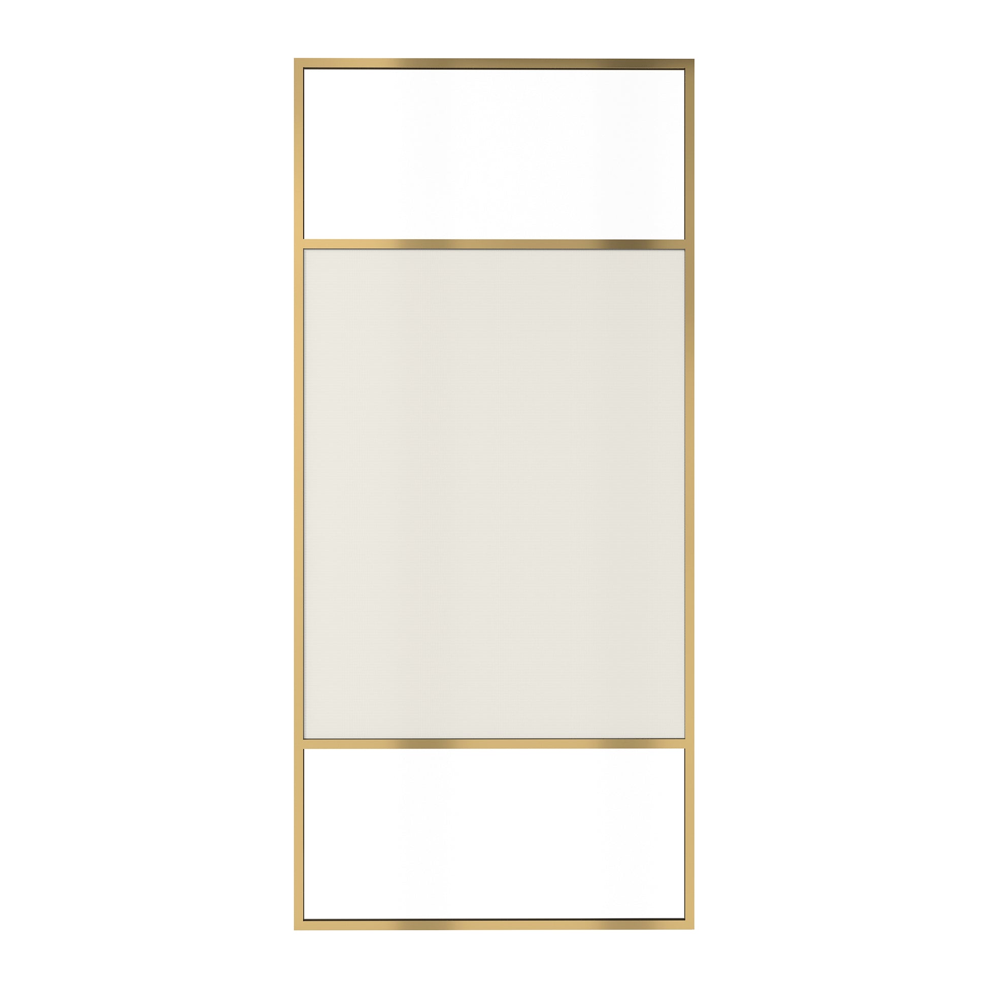 34 in W x 74 in H x 0.687 in. D Fixed Single Panel Shower Door in Brushed Nickel/Brushed Gold with Clear Glass and Frame