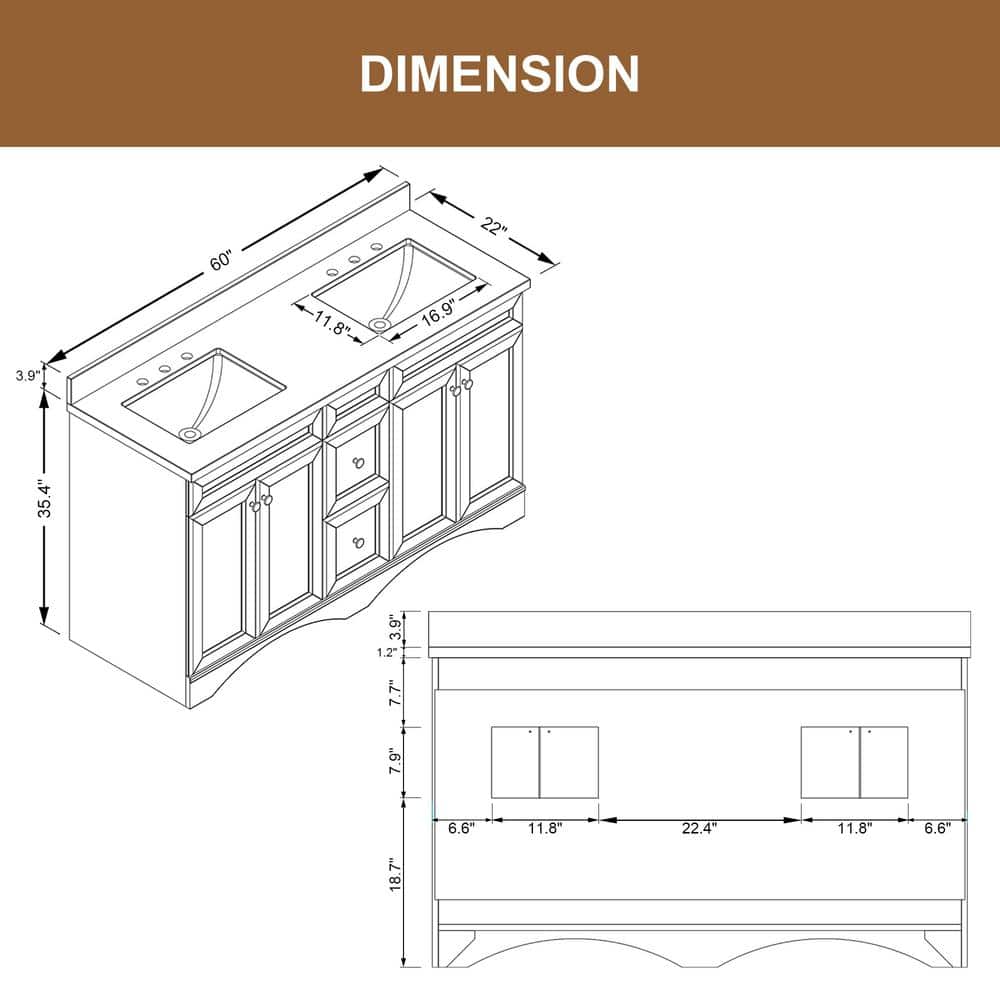 Solid Wood 60 in W x 22 in D x 39.3 in H Double Sink Bath Vanity in Modern Gray with Carrara White Natural Marble Top