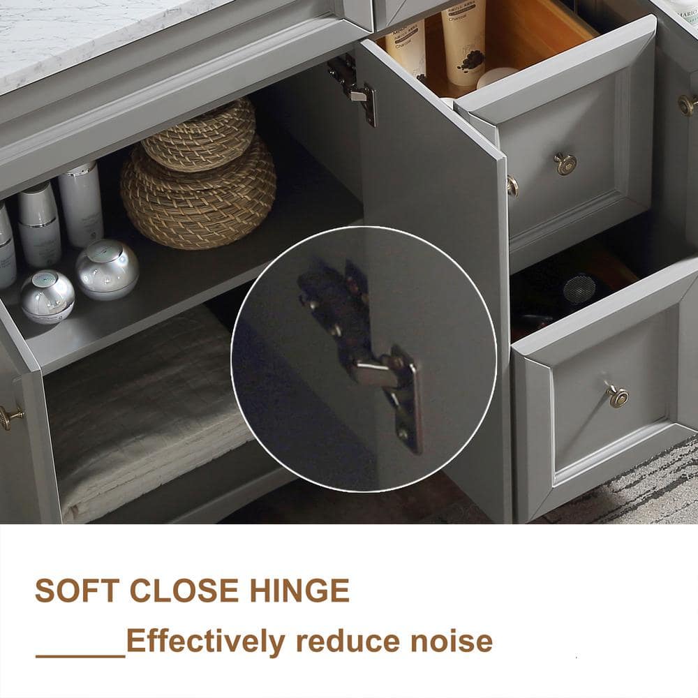 - Cabinet doors feature soft-close hinges, reducing noise and minimizing impact between the doors and the frame, our hinges offer six adjustment modes, making it convenient for aligning the cabinet doors