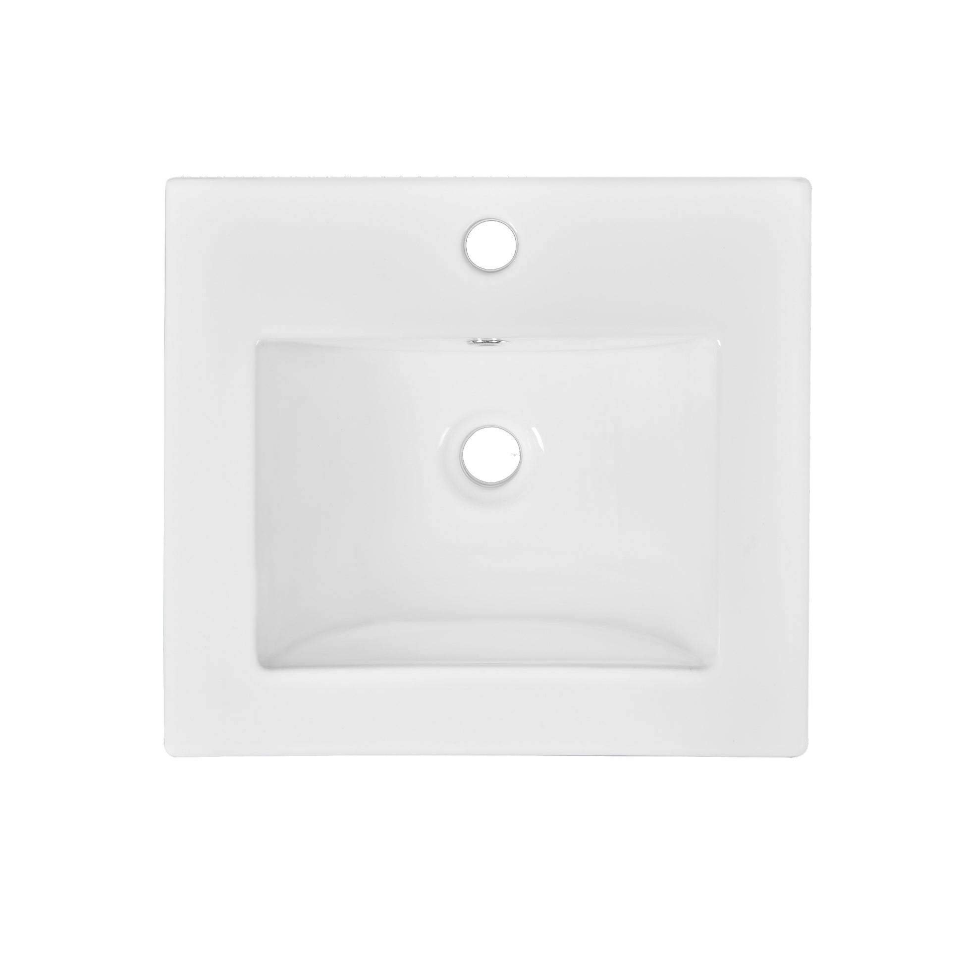 The vanity comes with a glossy white ceramic sink that’s easy to clean and resistant to scratches and stains. It fits a standard 1.5-inch faucet (faucet not included) and includes an overflow hole to prevent water spills. It’s both functional and good-looking.