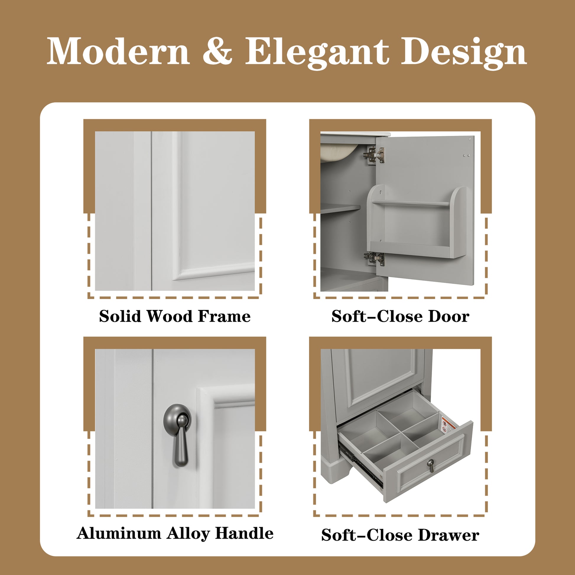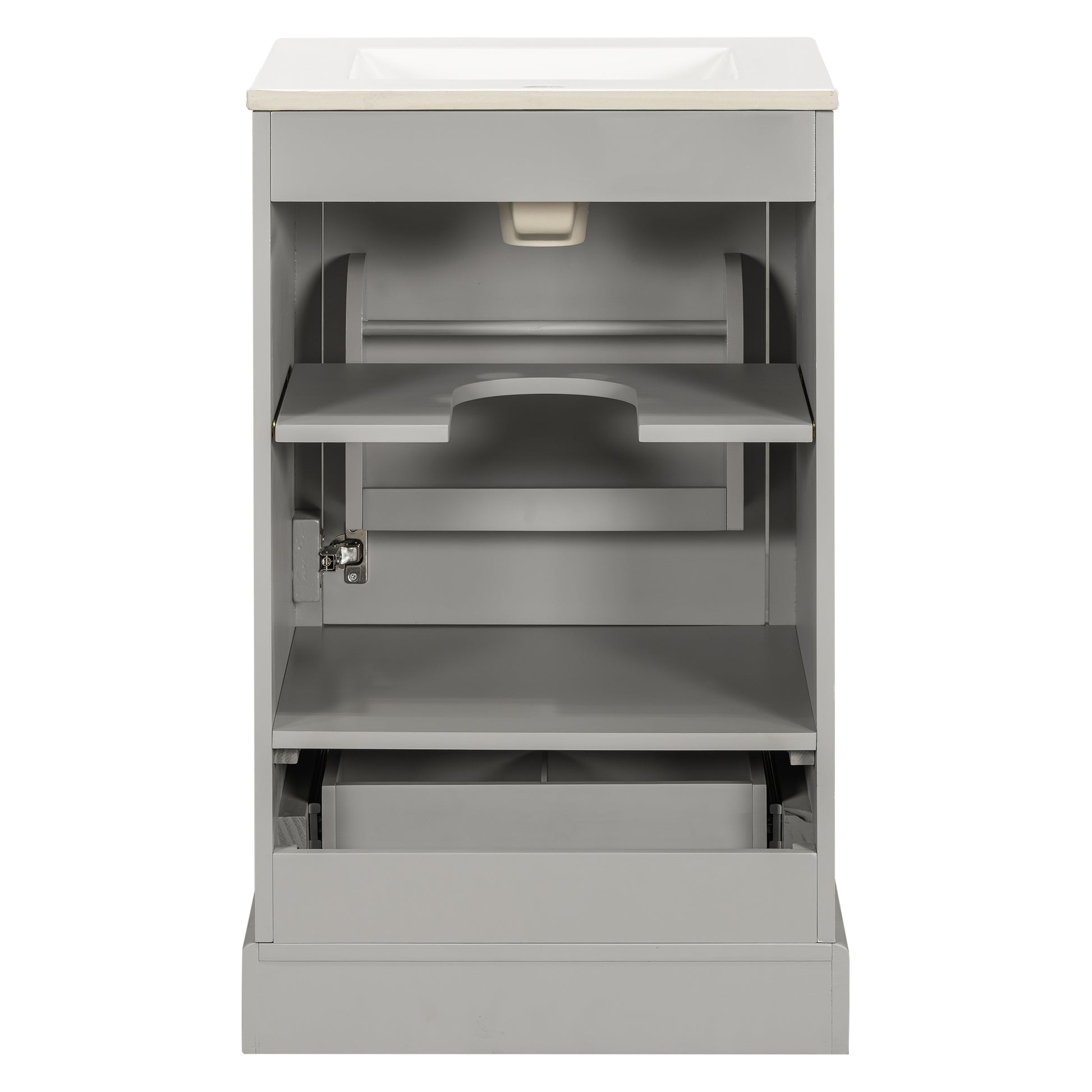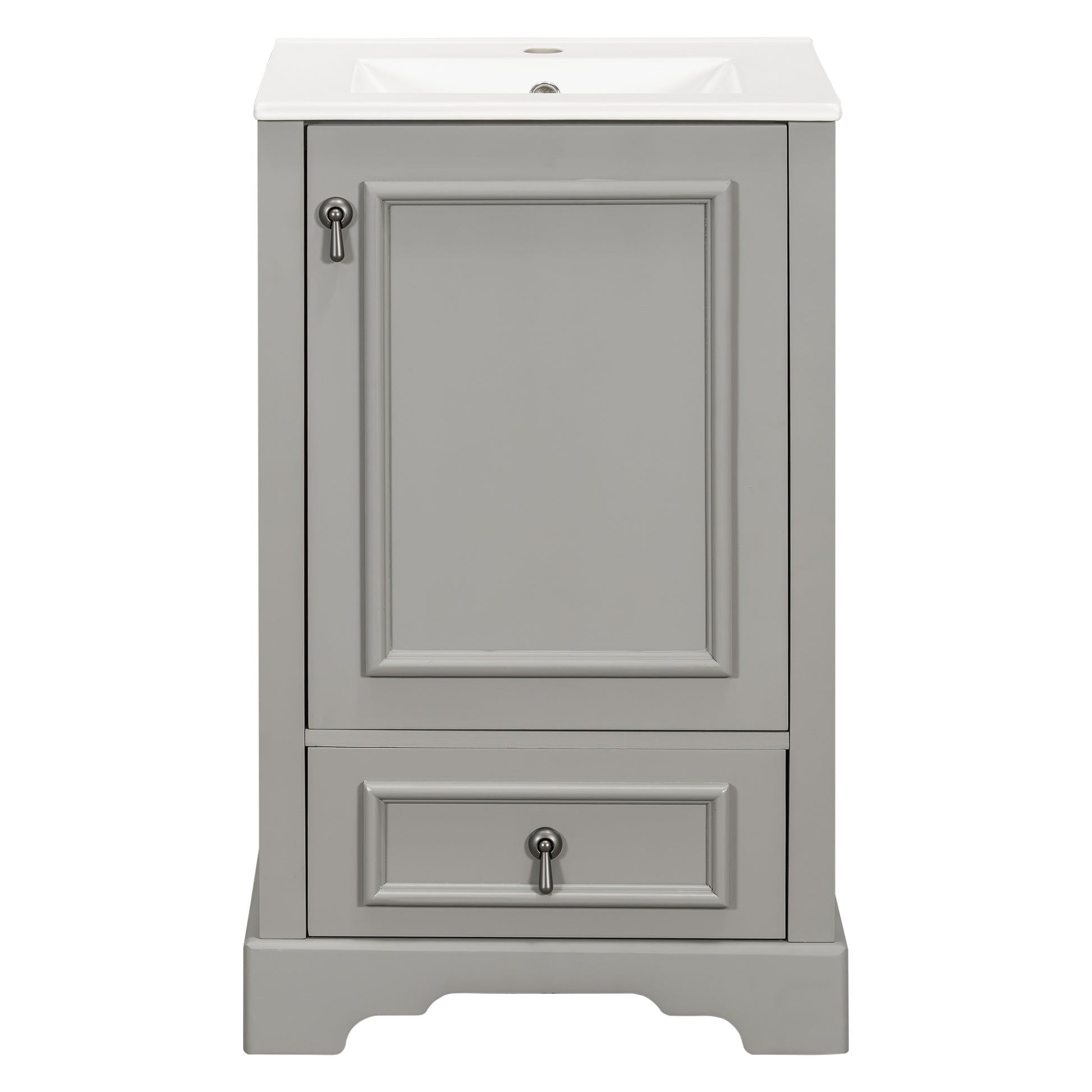 VanityFus Gray 20-in Bathroom Vanity Single Sink Combo Ceramic Top 1 Soft-Close Doors 1 Drawer Adjustable shelves